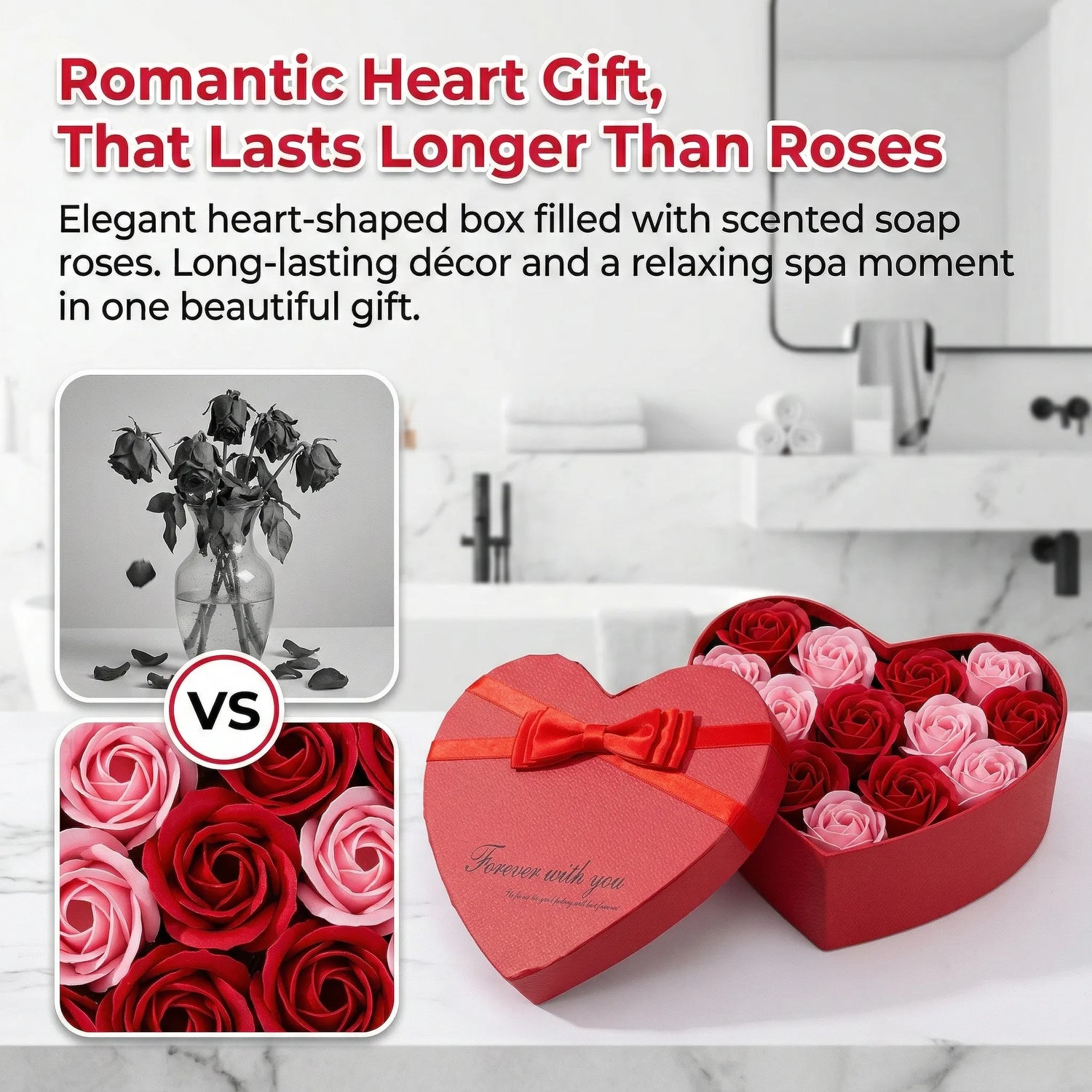 - Dlouhotrvající radost: Na rozdíl od živých květin mýdlové růže neuvadnou a zůstanou trvale krásné.