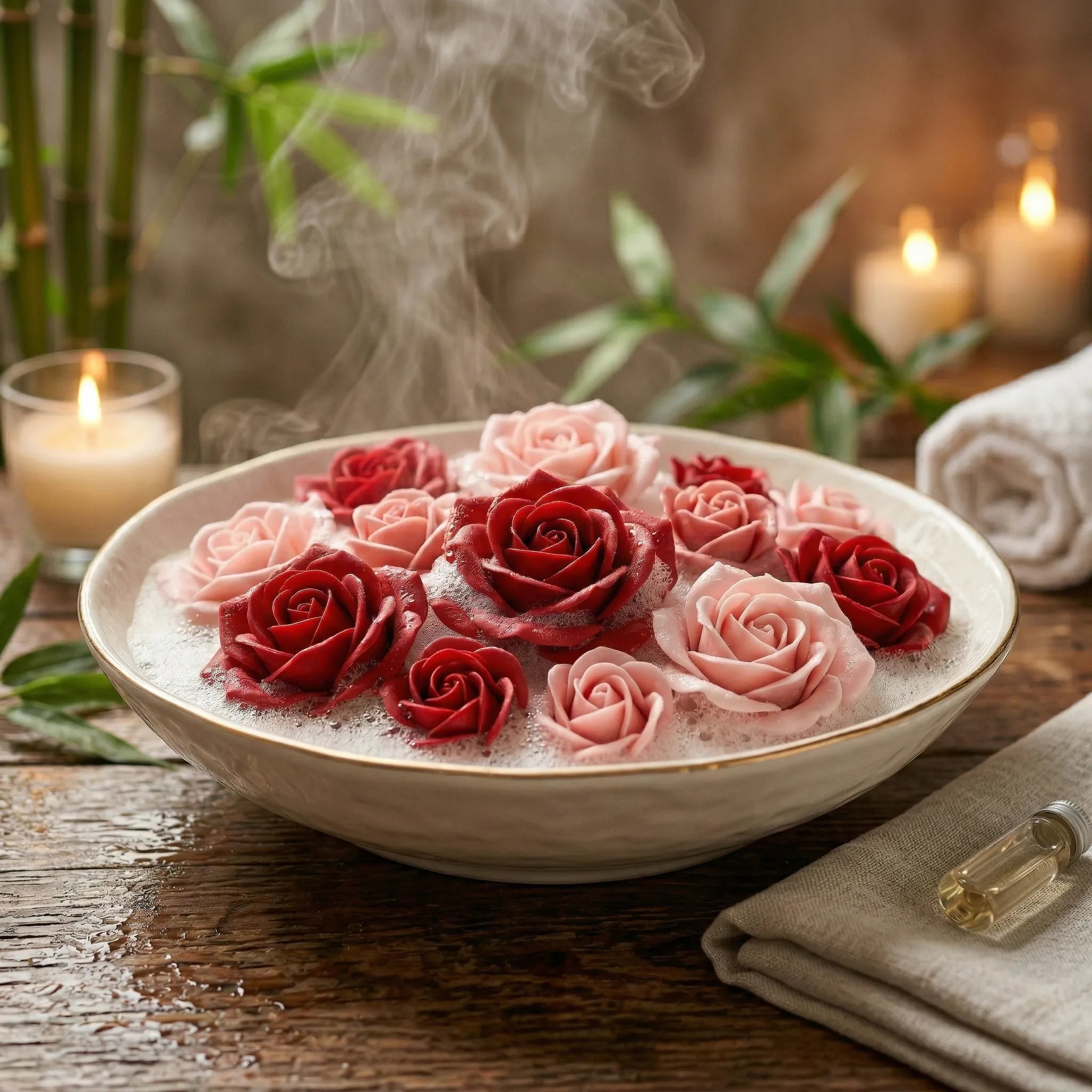 - Mýdlové růže s vůní: Růže jsou vyrobeny z mýdla, rychle pění a mají jemnou, šetrnou texturu k pokožce.