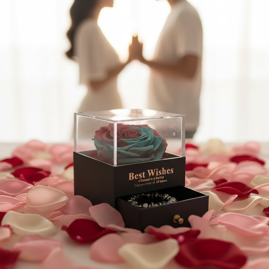 Věčné růže vydrží při správné péči minimálně 1 až 3 roky, často i déle. Nepotřebují vodu a měly by být chráněny před přímým sluncem, vlhkostí a prachem. Díky tomu zůstávají trvale krásné – jsou symbolem trvalé lásky a úcty.
