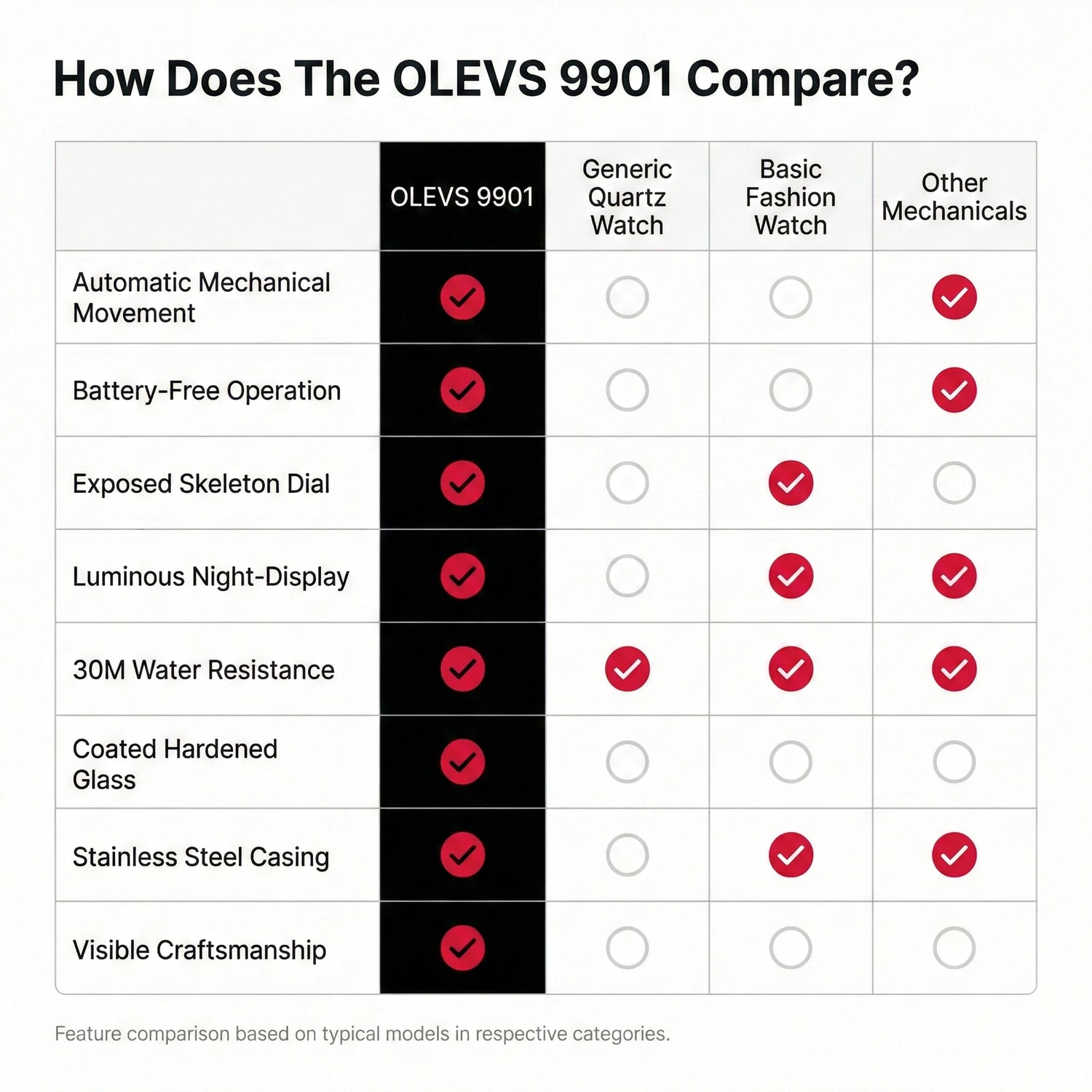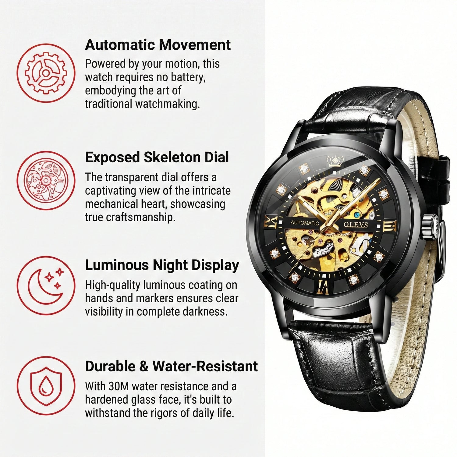 OLEVS Herreur 9901 - Mekanisk, Vandtæt & Lysende