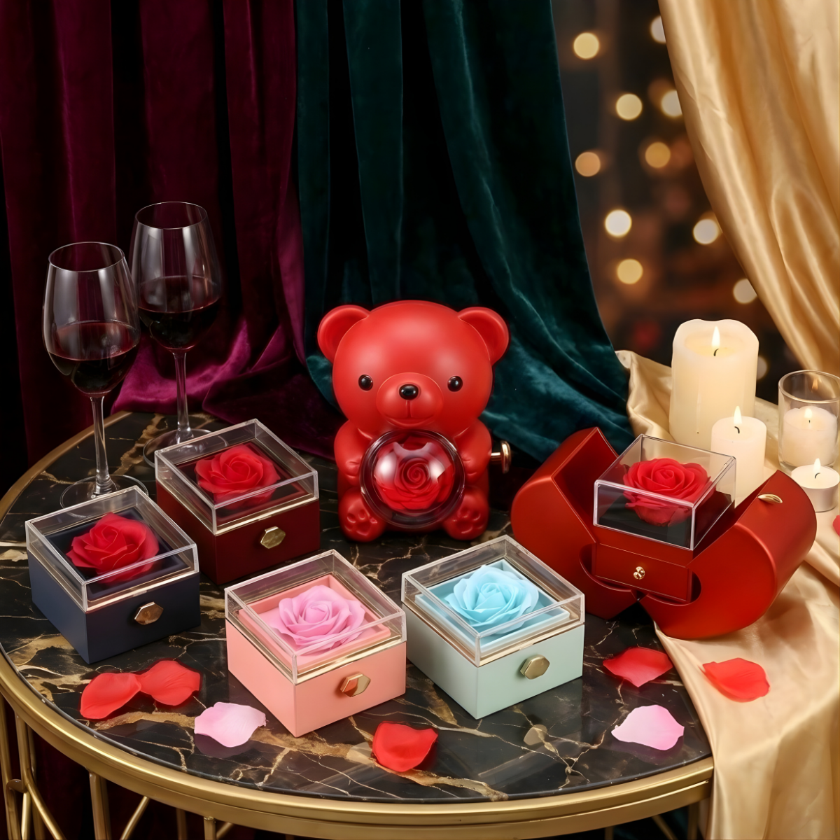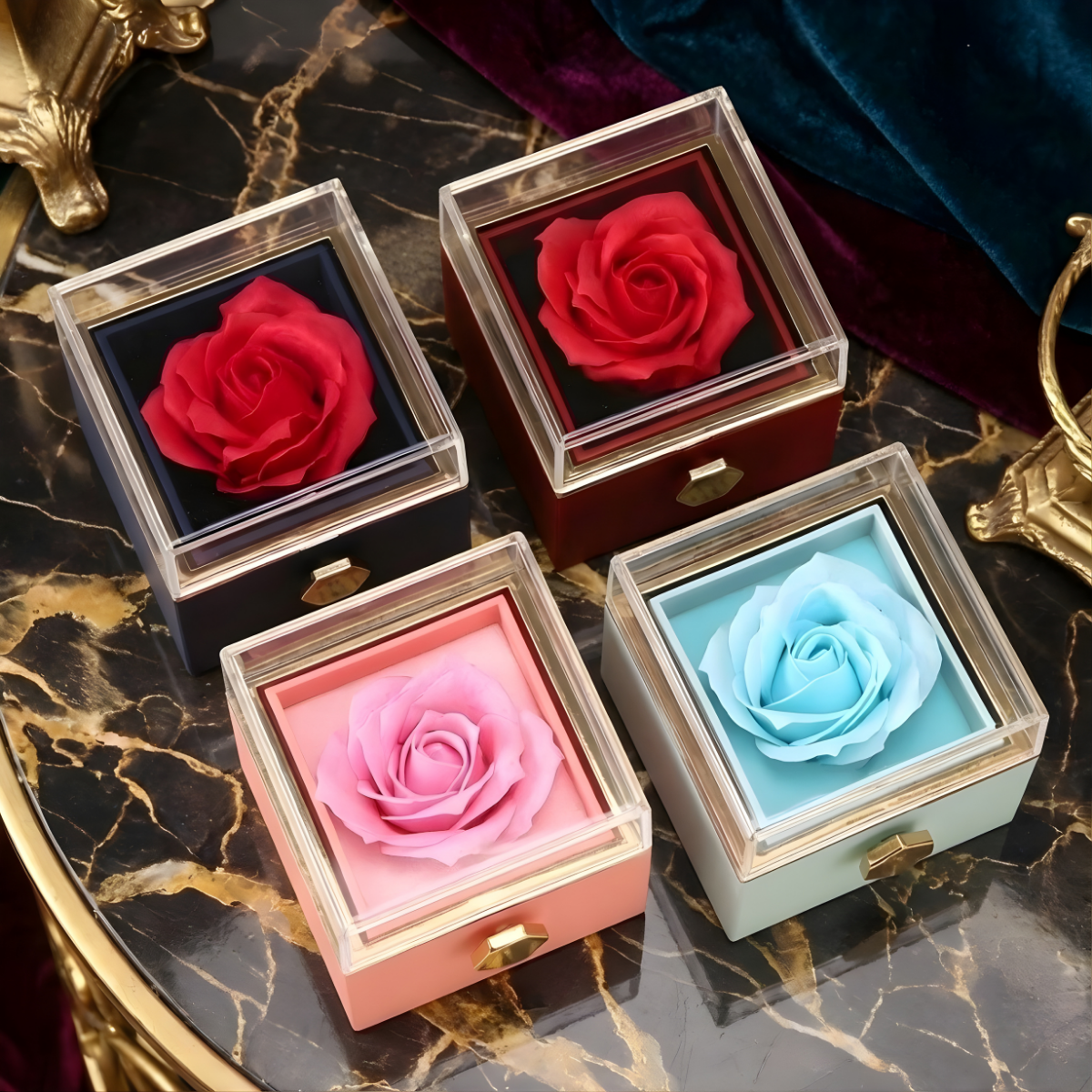 Unsere Eternal Roses Geschenkboxen werden mit dem Ziel ausgewählt, Eleganz, Symbolik und Alltagstauglichkeit zu verbinden. Die Real‑Touch‑Rosen sorgen für eine hochwertige Optik, die drehbare Schmuckbox für praktischen Nutzen – ein Geschenk, das man jeden Tag sieht und benutzt.