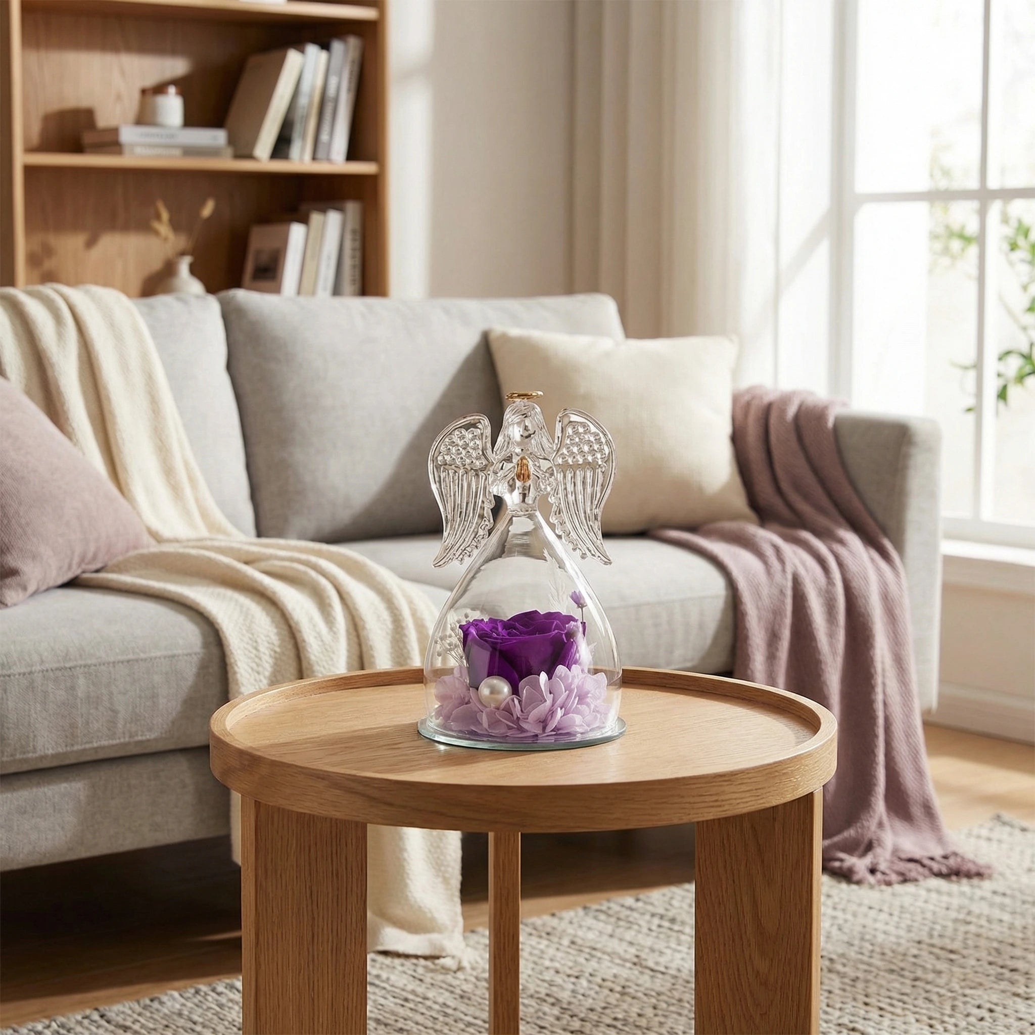 Rosa eterna in vetro con angelo - Regalo angelo custode