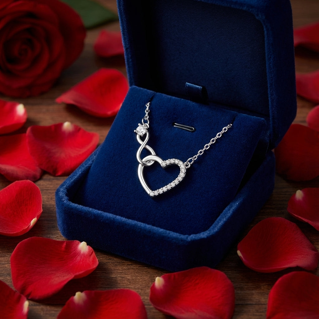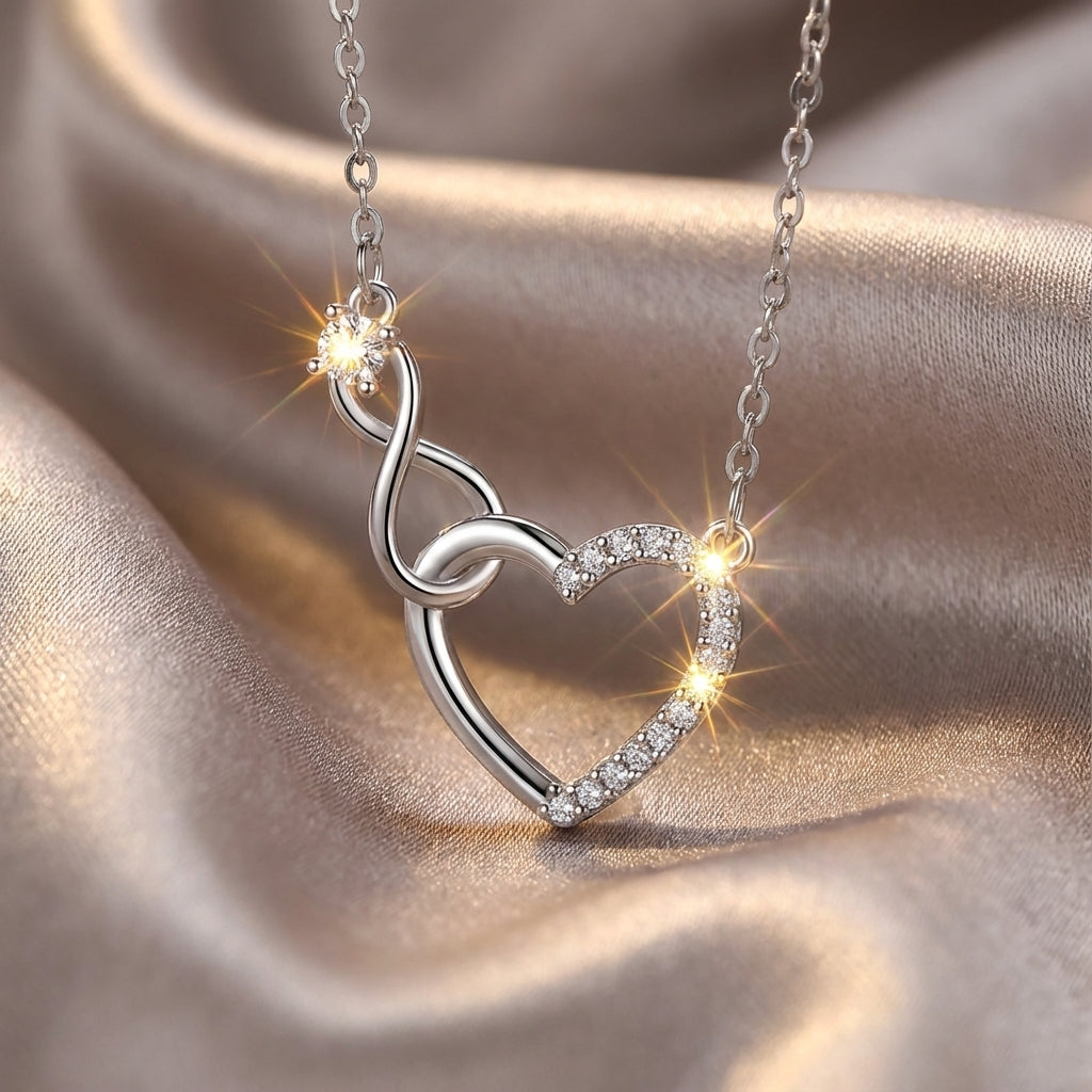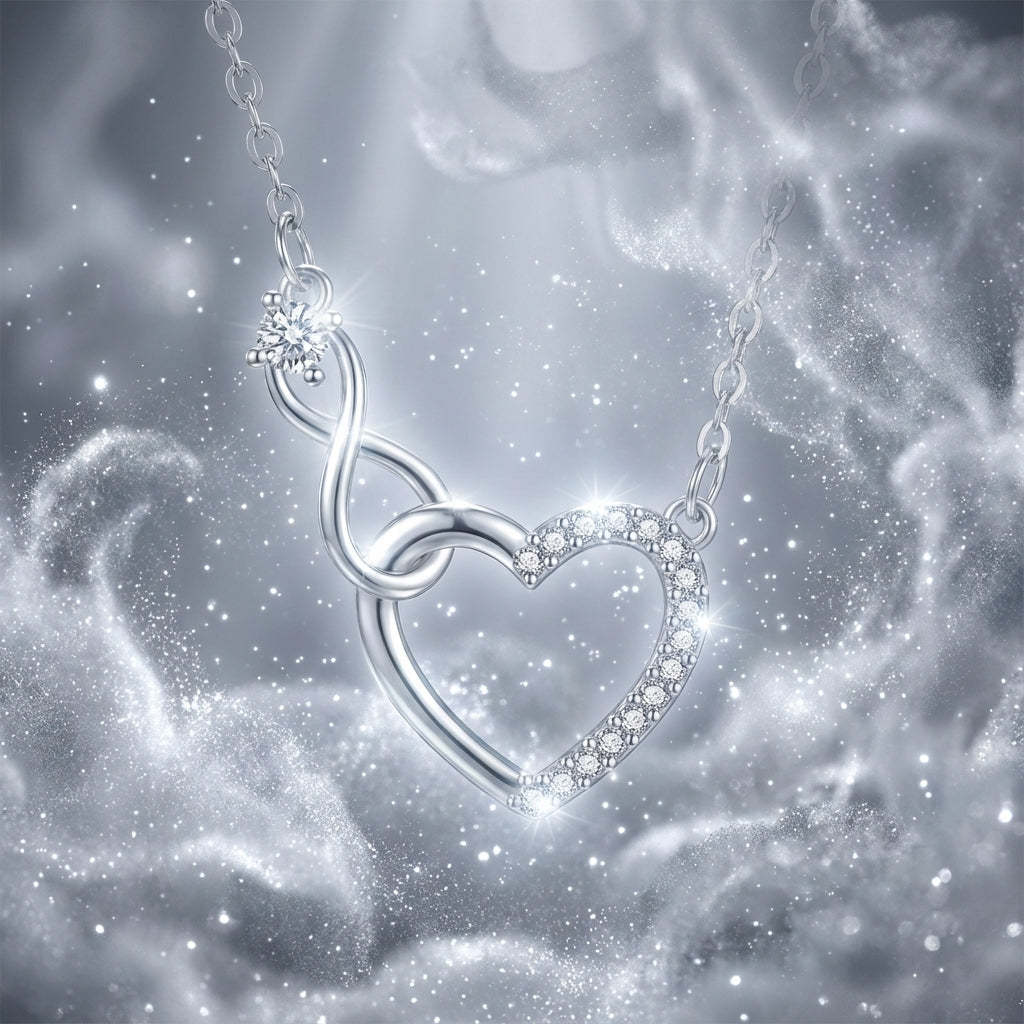 Infinity heart necklace made of 925 sterling silver by Amorlune, showcasing a delicate and elegant design.