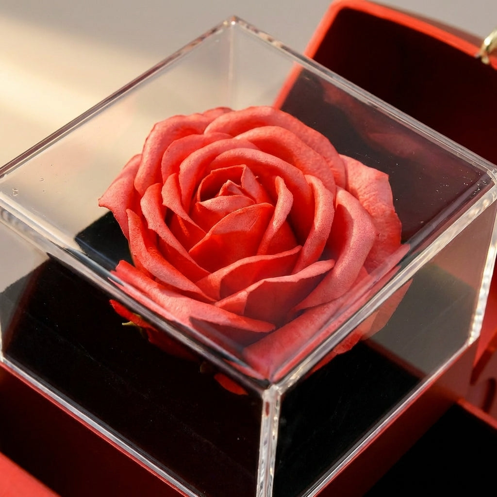 De eeuwige roos wordt door een speciale conserveringsmethode houdbaar gemaakt. Daarbij worden verse rozen direct na de oogst behandeld met een mengsel van glycerine en andere natuurlijke stoffen. Zo blijft de roos duurzaam zacht, kleurintensief en ziet eruit alsof hij vers geplukt is – helemaal zonder water of verzorging. Perfect als duurzaam cadeau, bijv. in het decoratieve appel-cadeauverpakking-ontwerp.